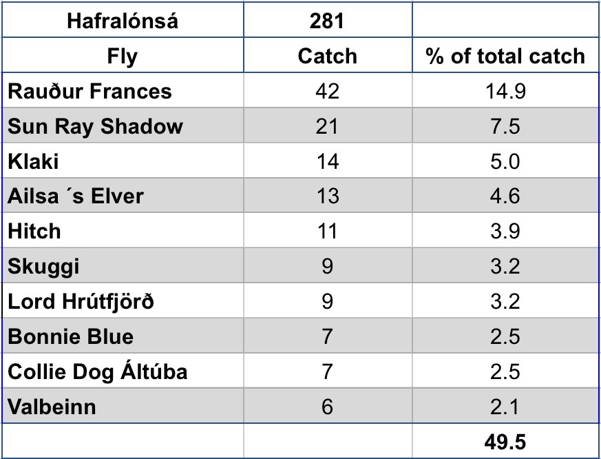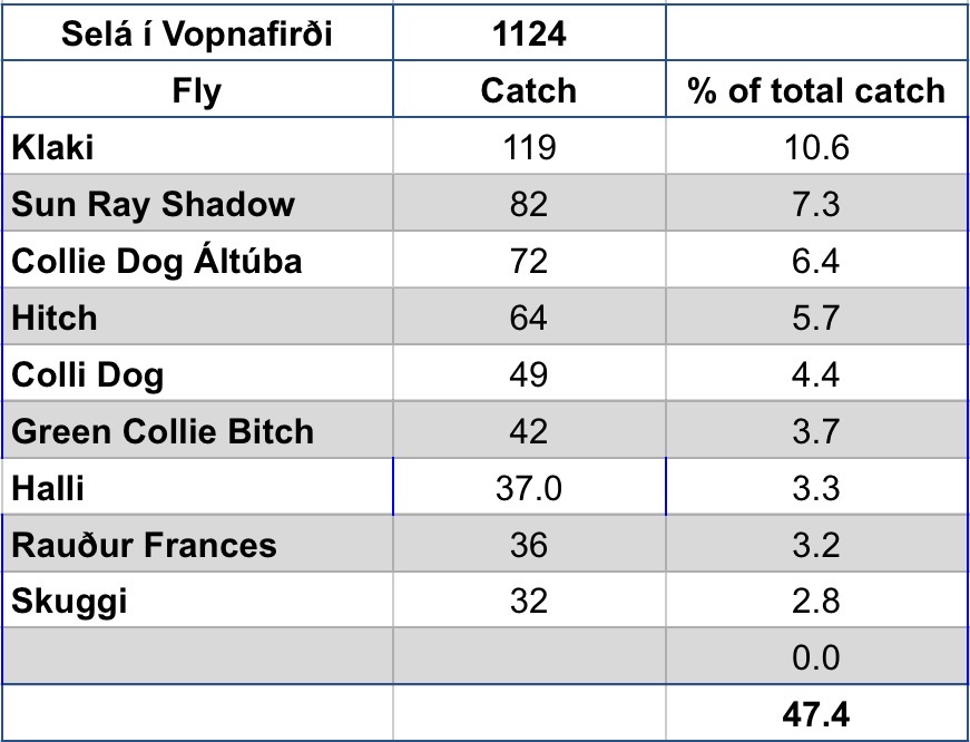 When analyzing the data from Northern and Northeast Iceland, it becomes clear that fly selection differs significantly from other regions that have been previously covered.