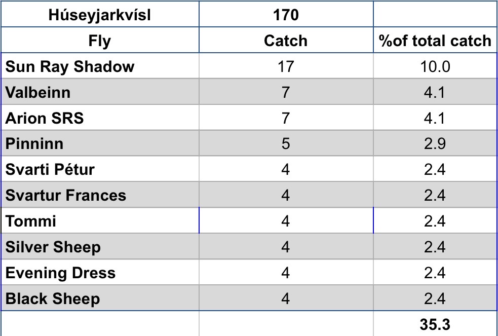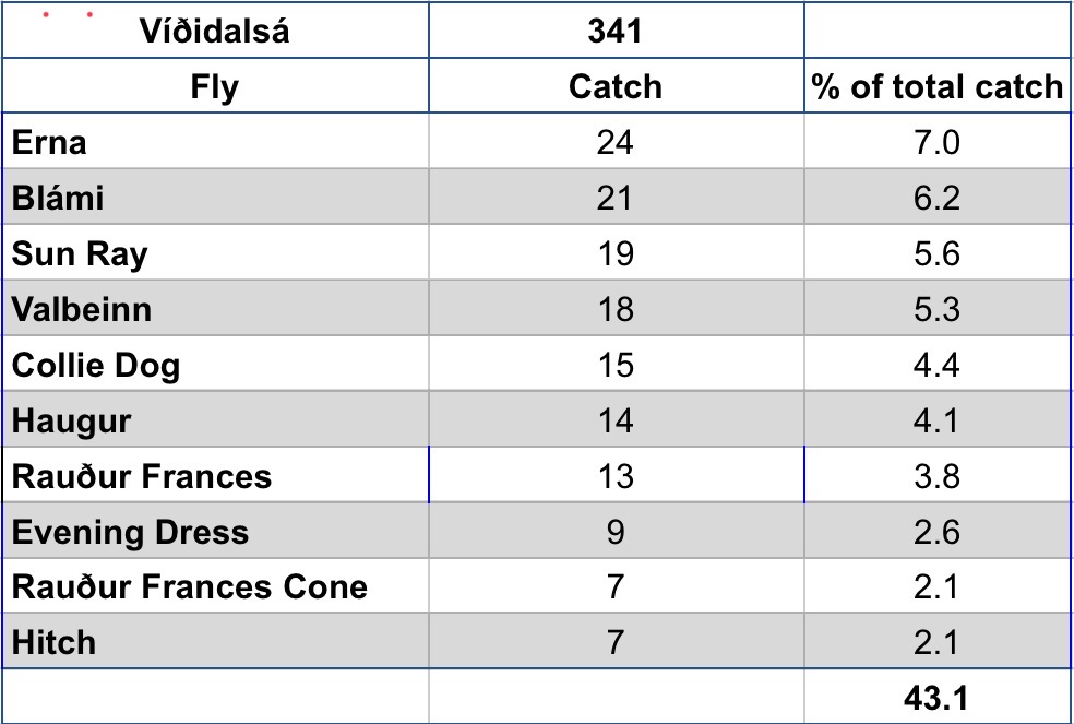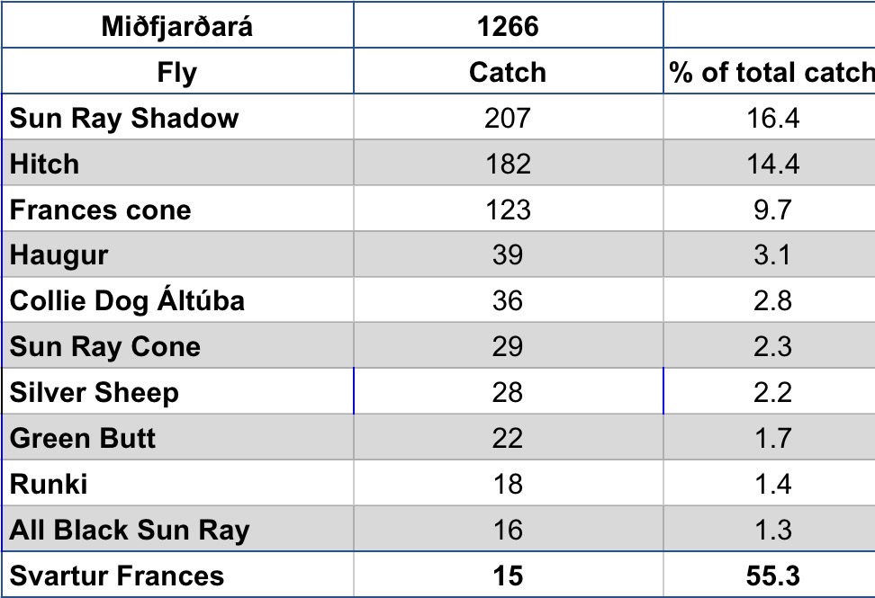 The data from Northwest Iceland clearly shows that while a wide range of flies are used, success is heavily concentrated around a relatively small group of proven patterns.