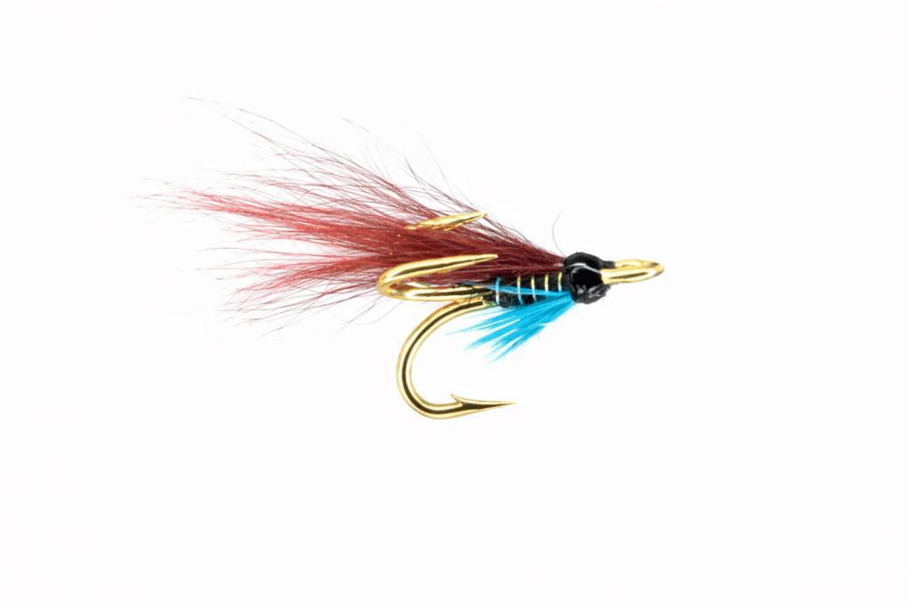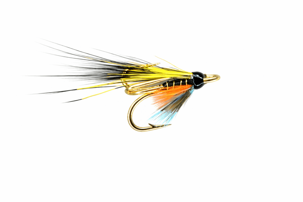 Sterkustu síðsumarsflugurnar eru Hairy Mary, Undertaker og Munro Killer. Að hafa þær á gylltum króki gerir þær enn fallegri og þær fá sterkari karakter. Enn fremur er ein míkrótúba sem verður að vera með gylltum krók og það er túban sem við köllum Black & Blue. Hún er góð alhliða fluga og virkar vel allt sumarið og persónulega finnst mér hún fallegust á gylltum krók.